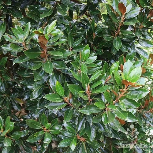 This fast-growing evergreen tree is always so popular with our customers for hedges, feature planting, and in containers. The rich tan colour under the leaves is a feature as is its deep glossy green foliage, and the very large ivory white flowers, which pollinators adore.