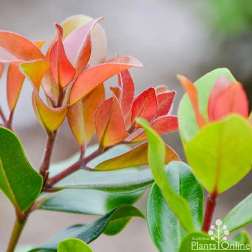 DESCRIPTION:Easy care compact shrub suited to coastal planting, rockeries and containers. Red tufty nectar-rich flowers; red new leaf growth.