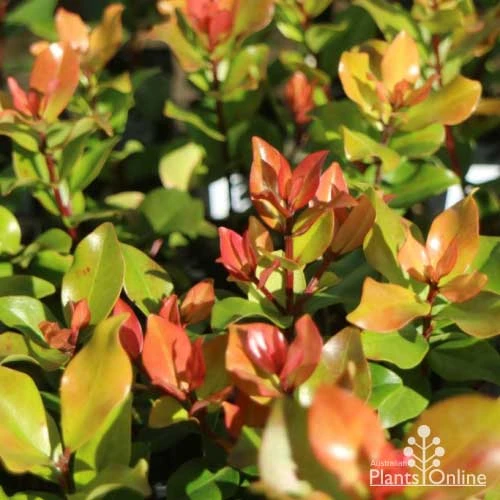 Neat growing, compact, hardy and keeps to a height of 1 metre. New growth is bright red, older leaves change from lime and golden to deep green; and the plants burst to life late spring with fiery-red nectar rich flowers. An ideal metrosideros for exposed sites, low hedges, borders and containers.